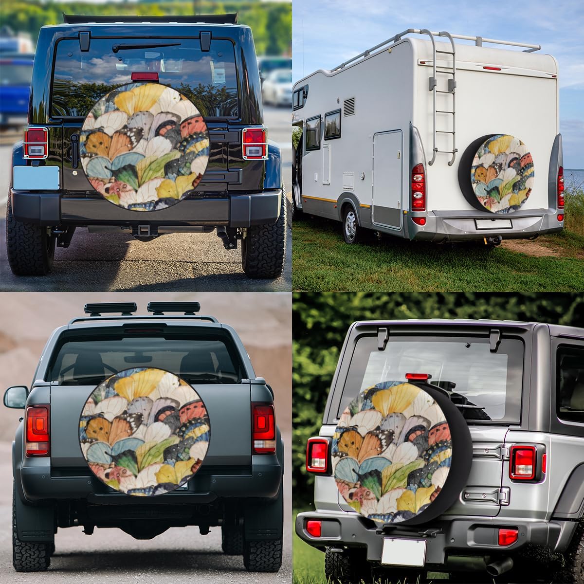 Product size: 14 inches, 15 inches, 16 inches.About Printing:Digital printing technology, single side printing, not easy to fade.Product/Fabric Thickness:Polyester fabric; 1mm thickness.We understand the importance of convenience, which is why our tire cover is incredibly easy to clean. Simply wipe it with water or use a mild detergent for tougher stains, and it will be as good as new. No need for elaborate cleaning procedures or expensive maintenance products—our spare tire bag ensures hassle-free upkeep.The soft and smooth texture of tire covers for cars guarantees that your tires remain scratch-free and undamaged. The fabric's gentle touch prevents any abrasive contact with the tires' surface, preserving their longevity and overall condition. Drive with confidence, knowing that your tires are protected by a cover designed with care.We emphasize precision and quality in every aspect of our tire cover's construction. The reinforced stitching ensures durability and longevity, even when subjected to rigorous use. The neat and tight stitching guarantees that the tire cover holds its shape flawlessly, maintaining its aesthetic appeal.RV spare tire cover shields your tires and wheels from a wide range of potential damages. It effectively blocks harmful UV rays, preventing sun damage and premature aging of the tire rubber. The cover acts as a barrier against rain, dirt, dust, and other environmental factors, keeping your tires in optimal condition and extending their lifespan.If you have any questions about our trailer wheel covers, please contact us. We will reply to you and deal with your problem within 24 hours. Bring you the best shopping experience.